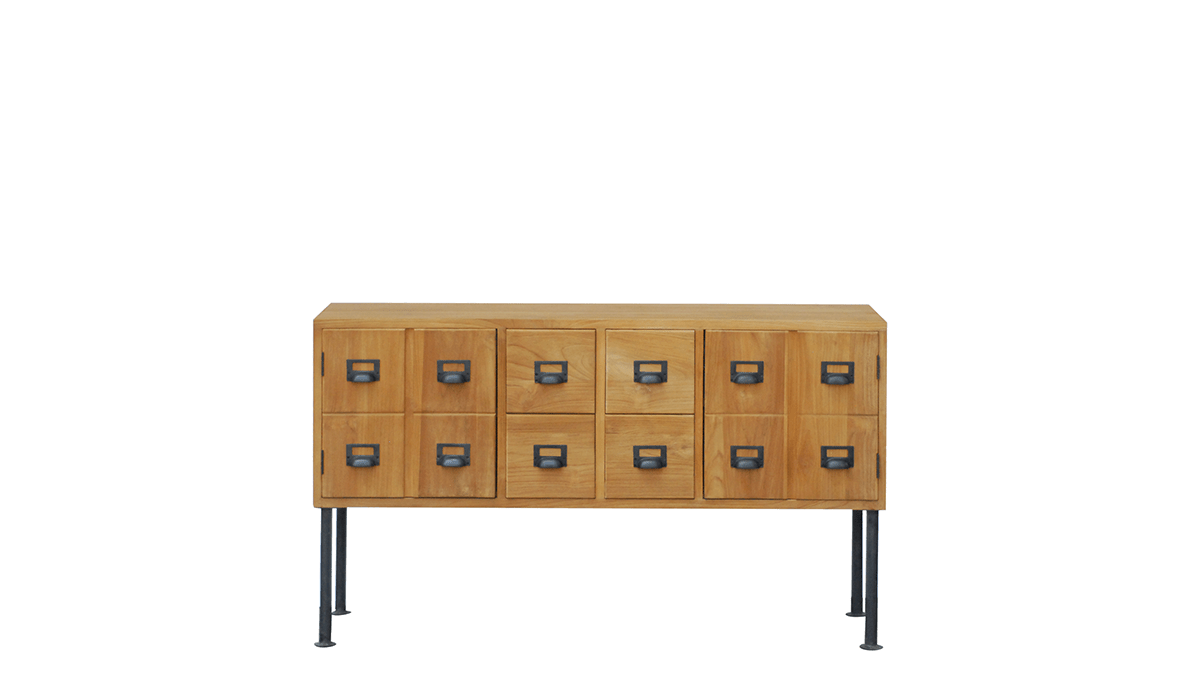 Category Chest of Drawers Product Code CO14 Product Name Sideboard 4 Drawers 2 Door Teak Metal Description L 134 x W 45 x H 70 Related Products