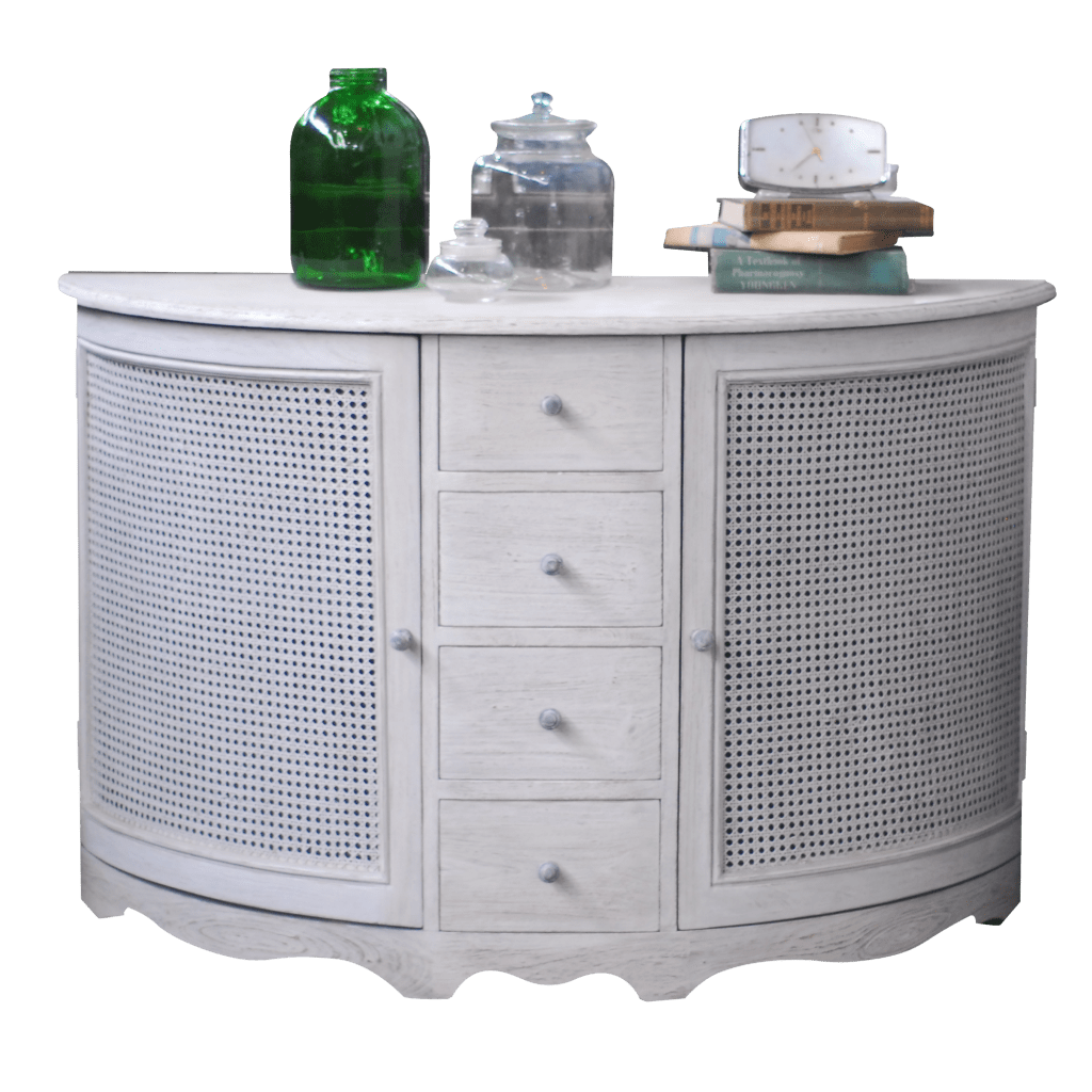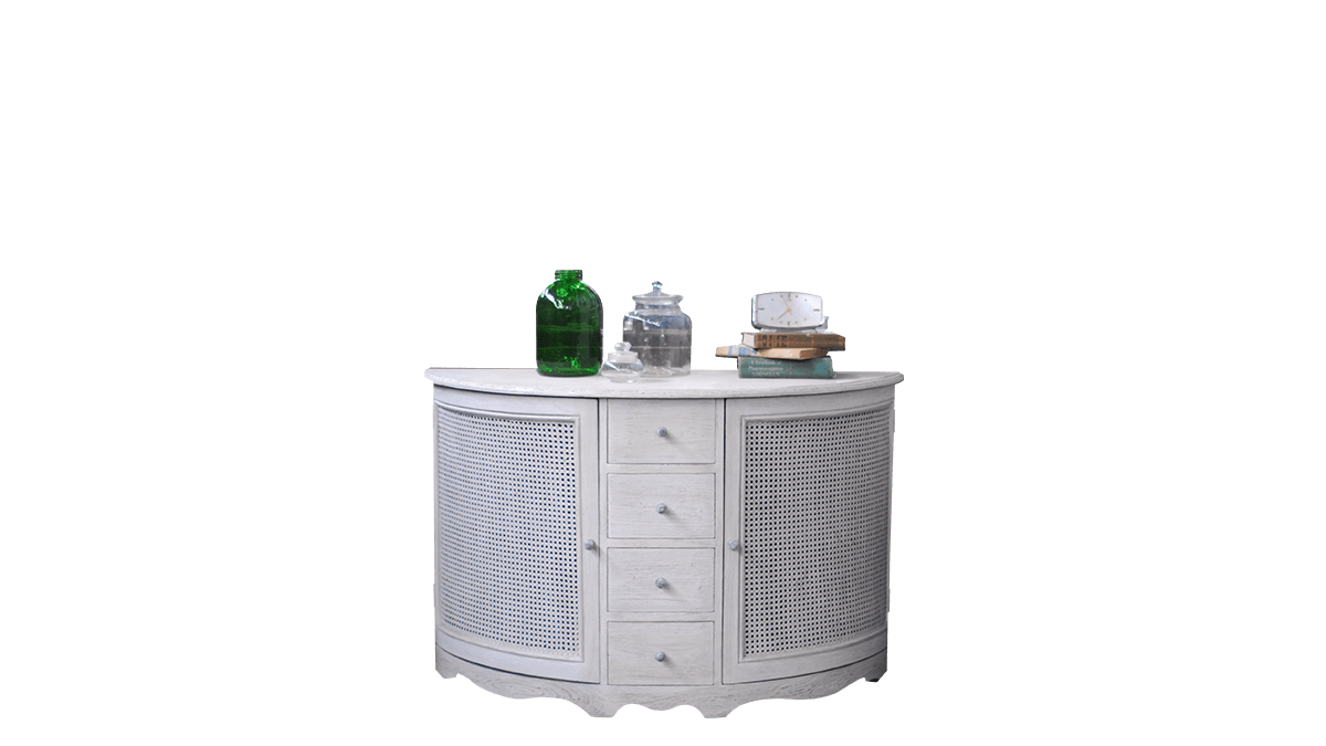 Category Chest of Drawers Product Code CO152 Product Name Commode Halfmoon Mahogany Canework 4 Drawers Description L 125 x W 50 x H 80 Related Products
