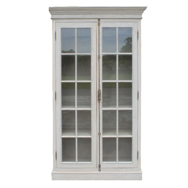 This French Cabinet Mahogany Glass Doors made of solid mahogany reclaimed pine. The classic style cabinet is completed with two hinged doors with fine glass and French casement style hardware in lightly Black antique iron works.