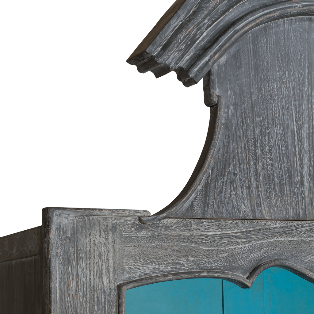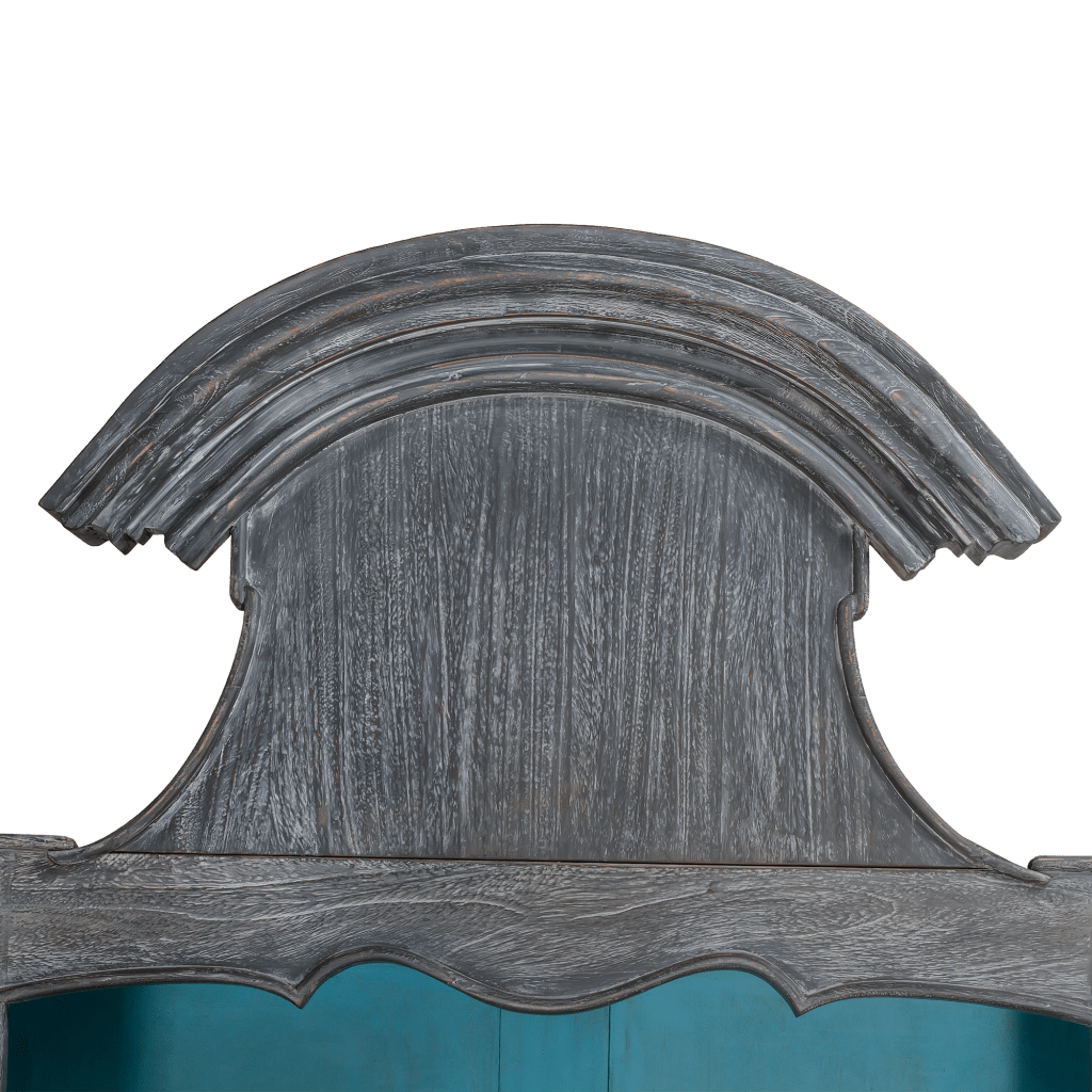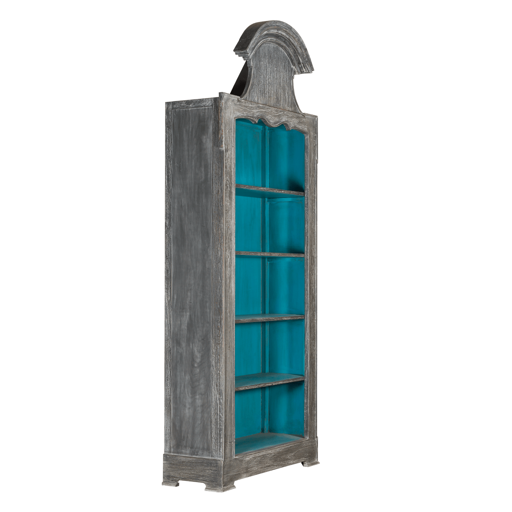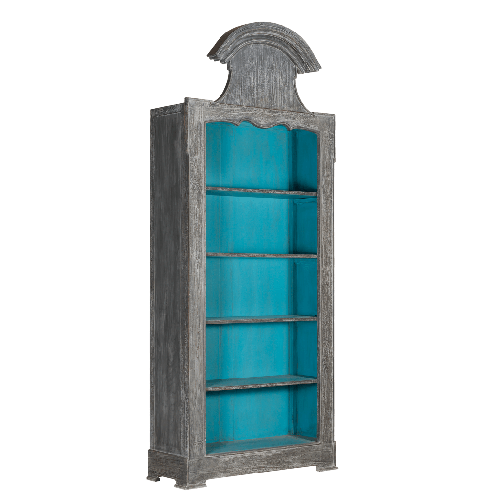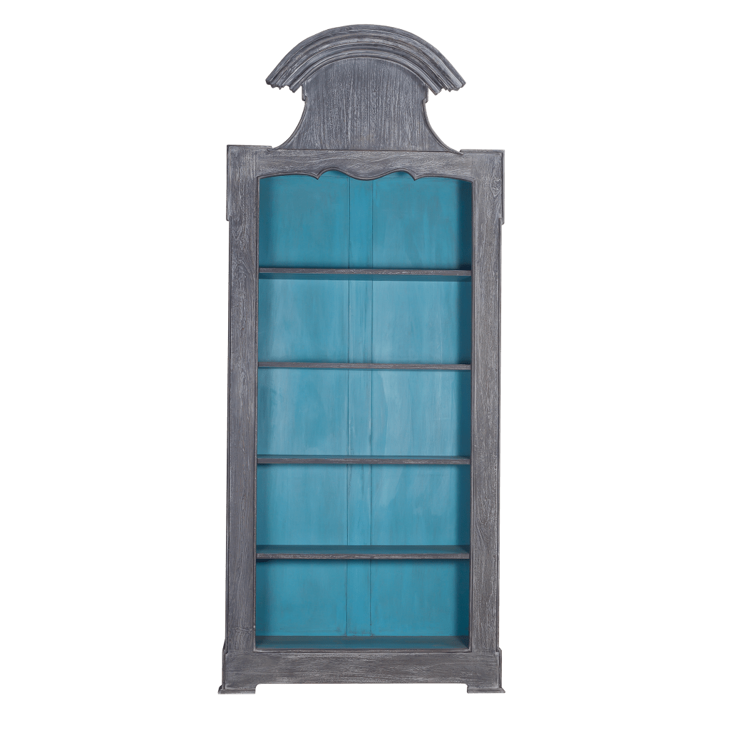 The arched Elegant bookcase is one of our latest collection from the range of Cabinet Mahogany 5 levels. Inspired by the Louis XV Versailles style, this elegant bookcase Cabinet is crafted from solid mahogany wood and finished in a Rustic French Blue and Black Antique.